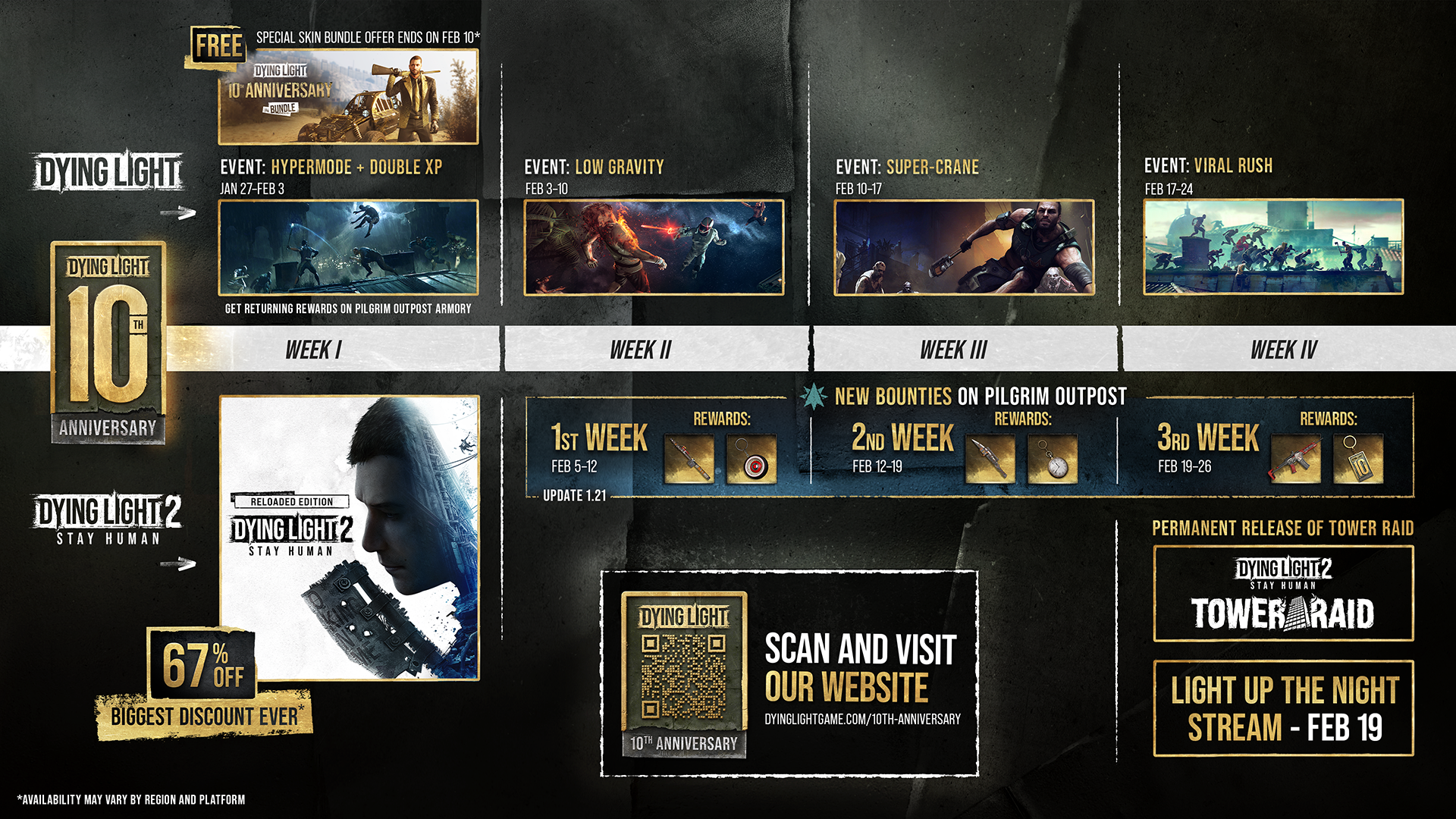 If you’re new to the franchise, we’ve prepared the Dying Light Anniversary Collection just for you! It comes with both Dying Light Enhanced 10th Anniversary Edition and Dying Light 2: Stay Human Digital Extras Edition. This collection will be available starting from January 30.