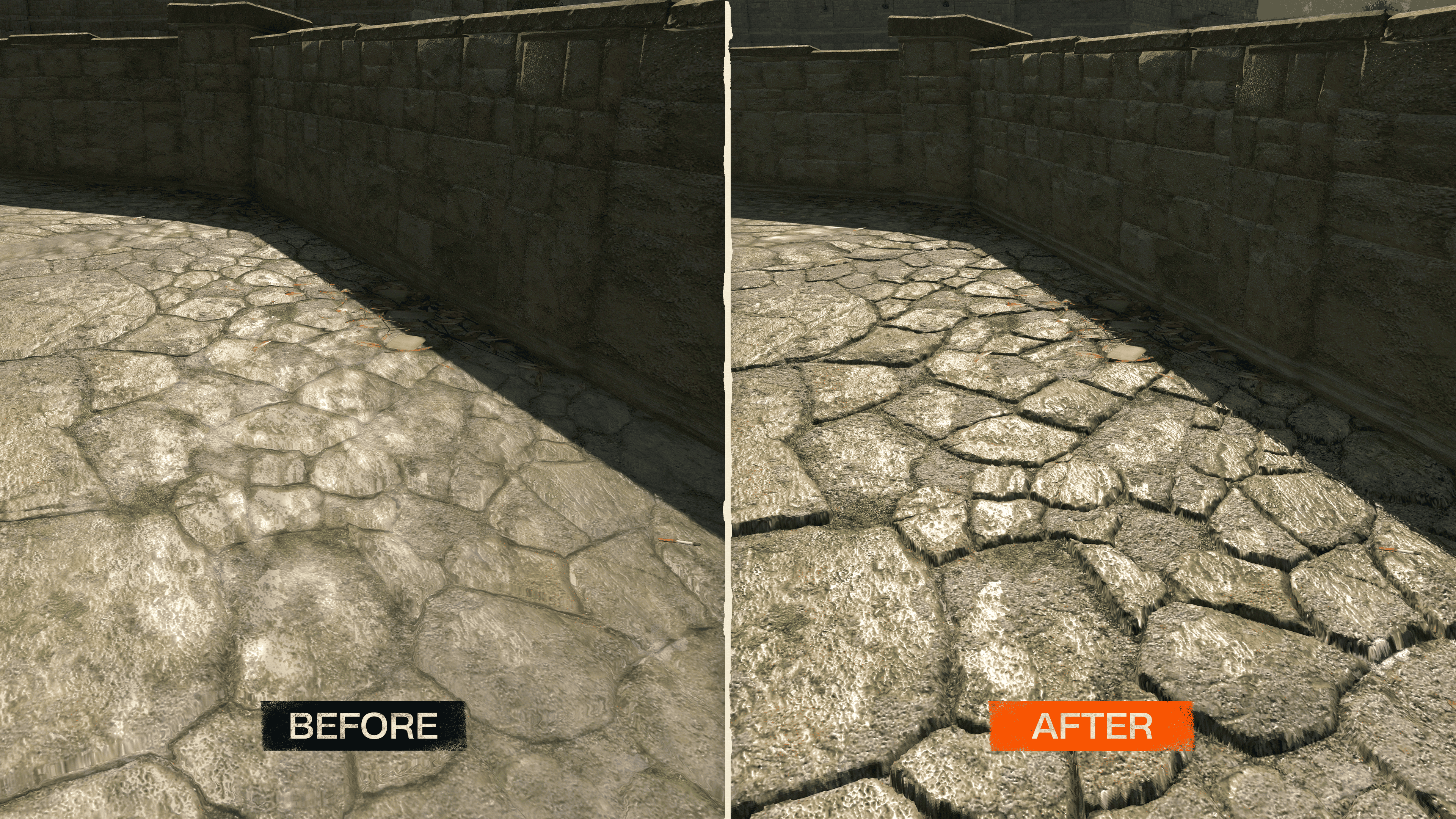 But one of the biggest differences will be visible on floors and cement walls. We’re introducing a new 8K Ultra shadow quality and improved the lighting options of many surfaces and with these new shadows, a lot of surfaces that previously looked rather flat now really pop out and get depth!