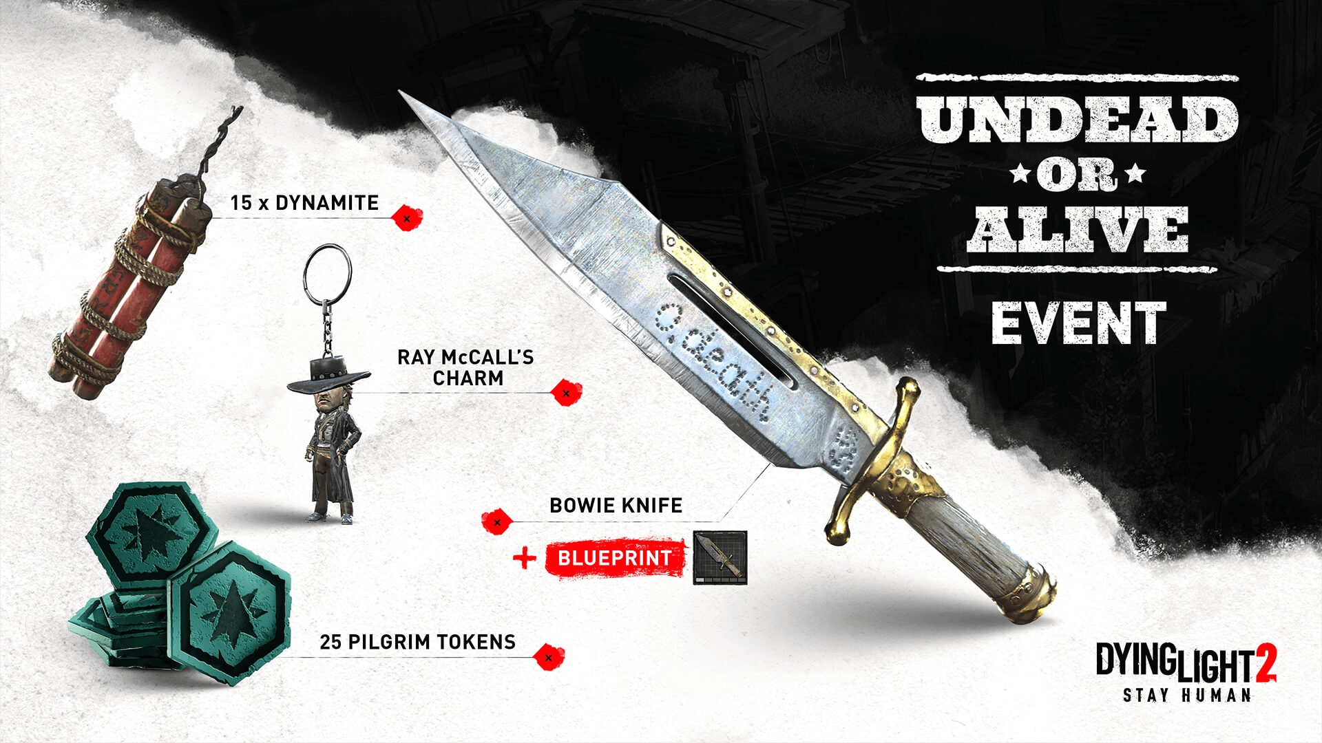 *Participation and personal rewards will appear in your in-game stash once the goal is reached. For the Pilgrim Outpost Warm-Up Goal and the Pilgrim Outpost Global Goal, head over to the outpost.dyinglightgame.com/events. Learn more by signing in to your account and claiming rewards once you complete the goals.